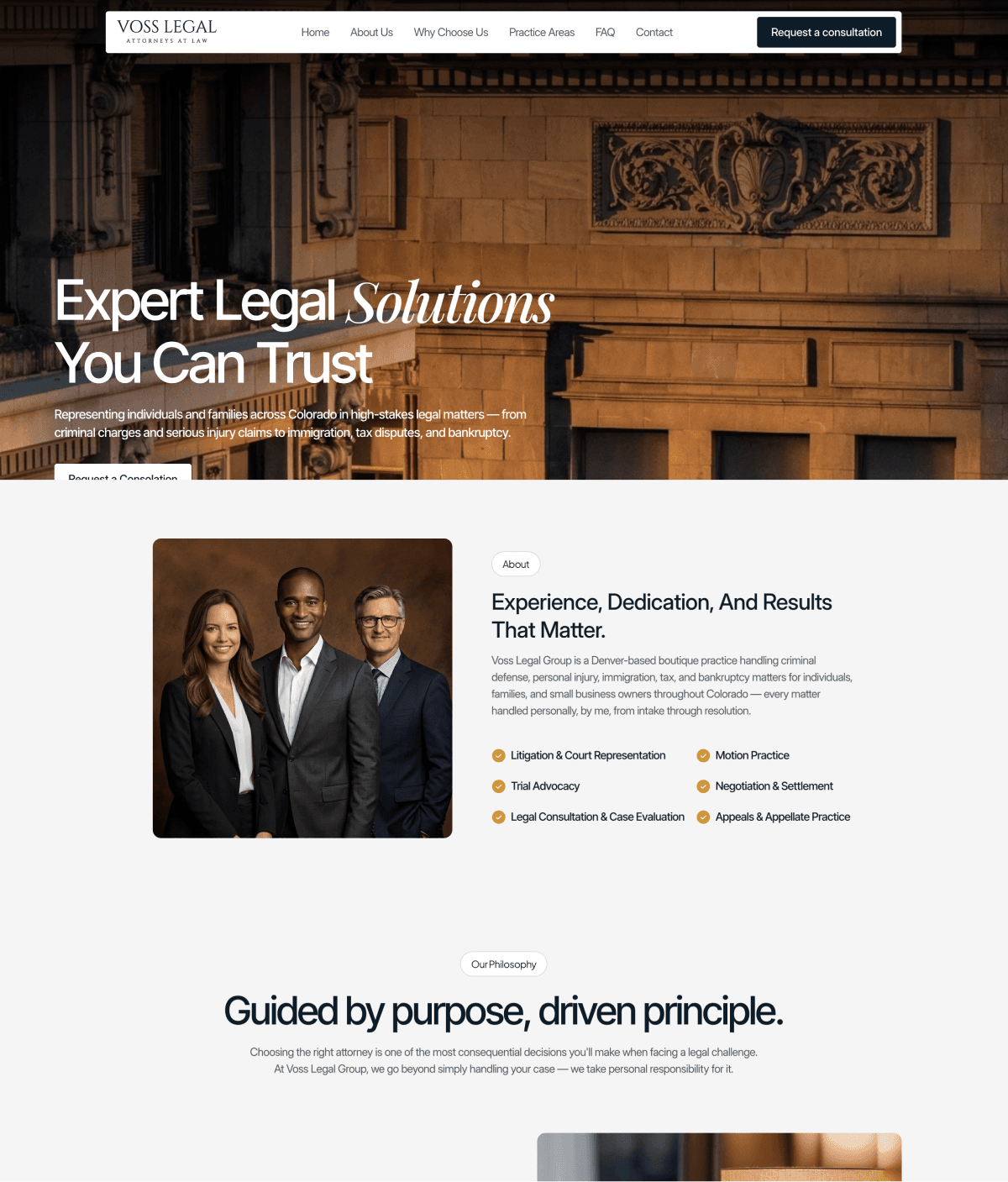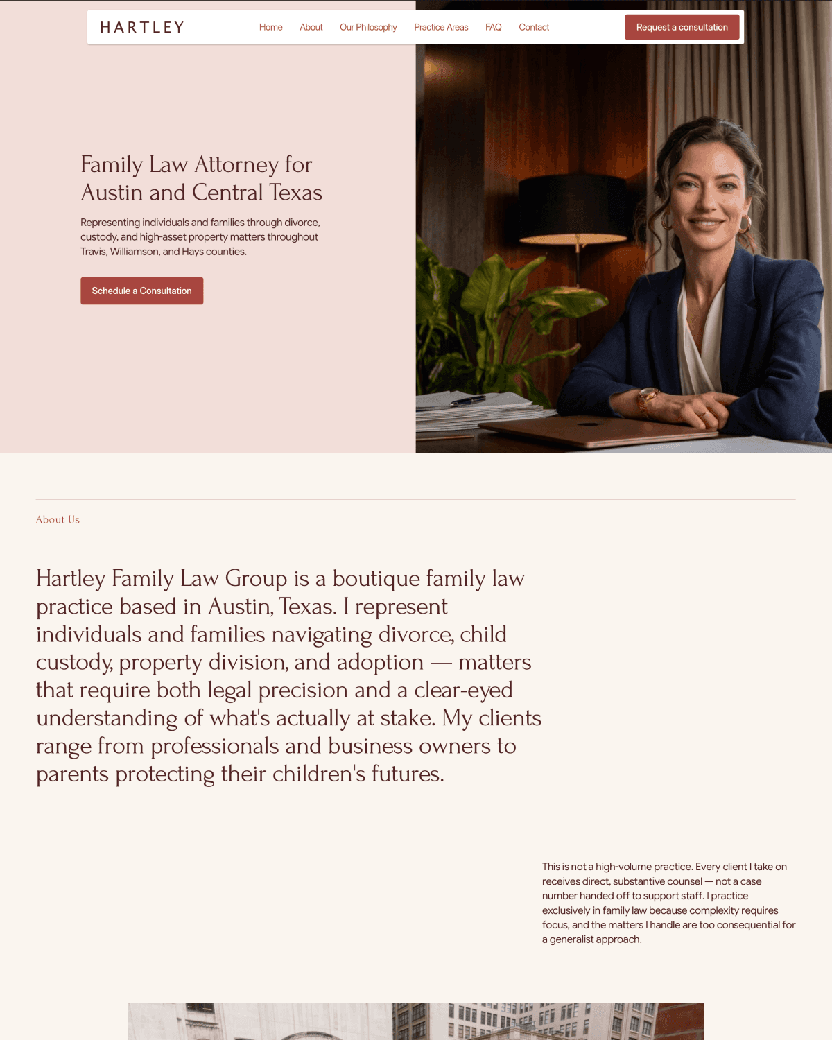 Gavel Studio™ is a turnkey studio experience built exclusively for boutique law firms. From content and design through launch, everything is handled by our team — so you don't have to lift a finger. Built to the highest design standards. Delivered in a week.